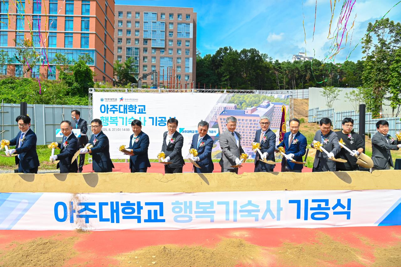 아주대 신축 기숙사인 행복기숙사의 기공식이 열렸다. 지하 1층·지상 12층 규모로 총 990명이 머물 수 있는 행복기숙사는 오는 2027년 6월 준공 예정이다.